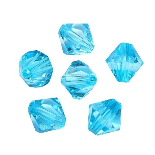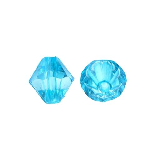 Lightweight, 6mm, Acrylic, Bicone Beads in a Sky Blue color, are an affordable alternative to glass and crystal beads.