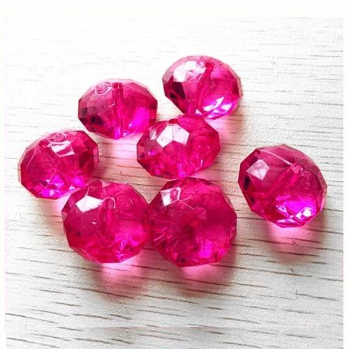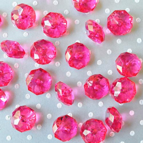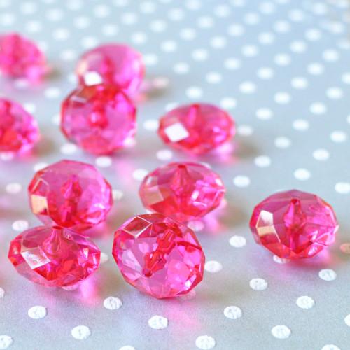 Acrylic Beads, Rondelle, Faceted, Fuchsia, 12mm
