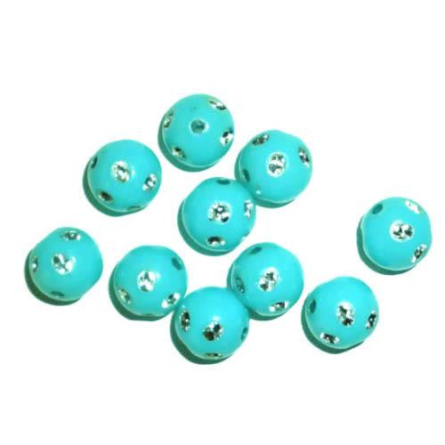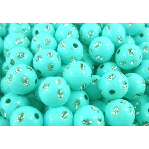 Acrylic Beads, Round, Bling, Turquoise, Silver, 8mm