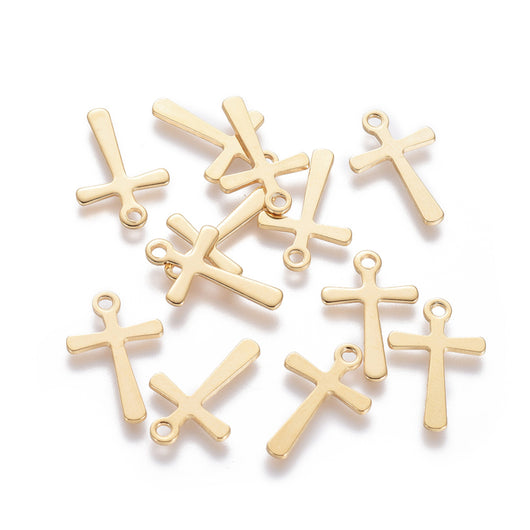 Impart a sense of devotion to any design with these 15mm, Gold Plated, Stainless Steel, Cross, Charms.