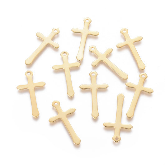 Impart a sense of devotion to any design with these 24mm, Gold Plated, Stainless Steel, Cross, Charms.