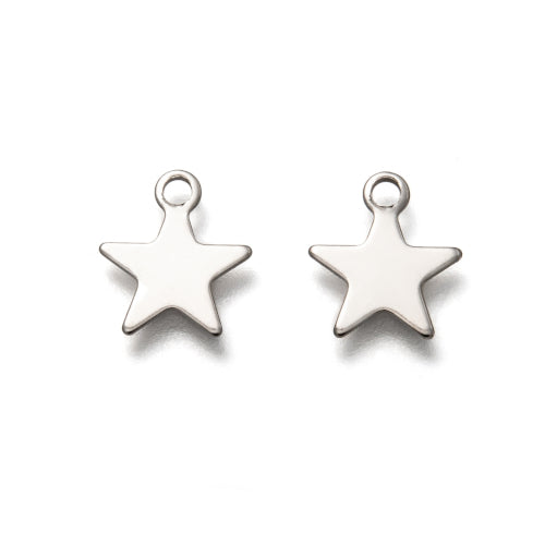 Charms, Star, Laser-Cut, Stainless Steel, Silver, 9.5mm