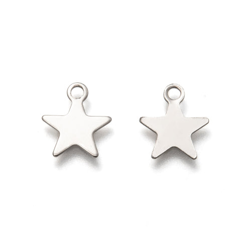 Expertly crafted from 201 Grade Stainless Steel, these Silver, 9.5mm Laser-Cut, Star, Charms offer a sleek and modern addition to any jewelry collection.