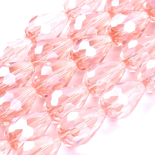 Each Faceted, 15mm, Teardrop, bead features an eye-catching pearl luster finish in a Pink hue.