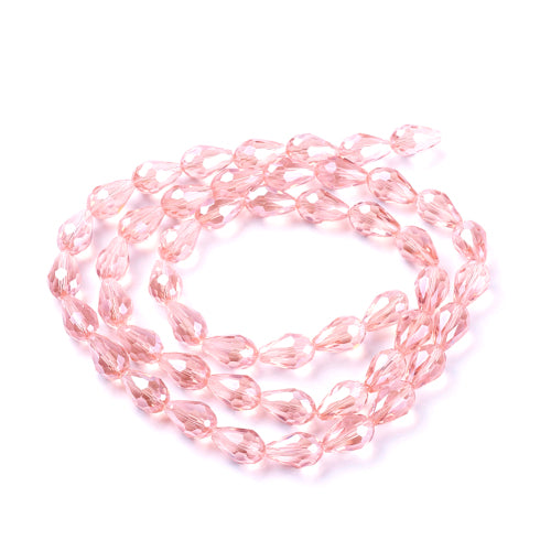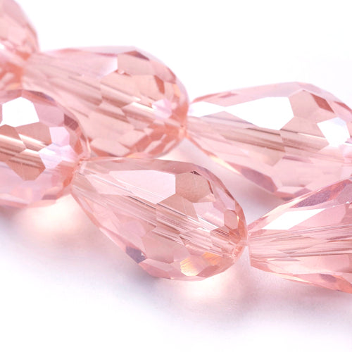 Crystal Glass Beads, Teardrop, Faceted, Pink, 15mm