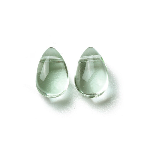 Bring a touch of freshness and serenity to your jewelry designs with these beautiful 9mm, Light Green, Teardrop, Glass Beads.