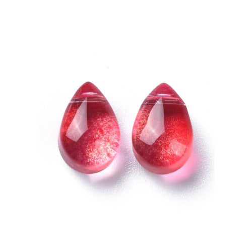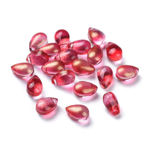 Elevate your jewelry designs with these dazzling 9mm red teardrop glass beads, perfectly accentuated with a glittering gold powder finish.