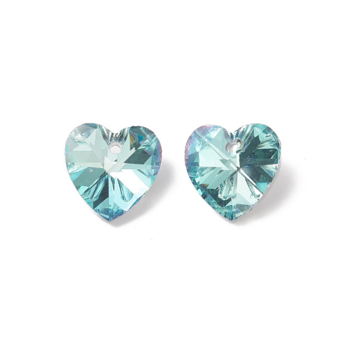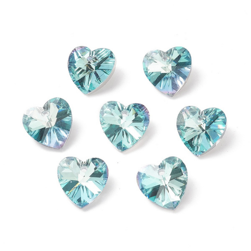 Glass Charms, Heart, Faceted, Aquamarine AB, 14mm