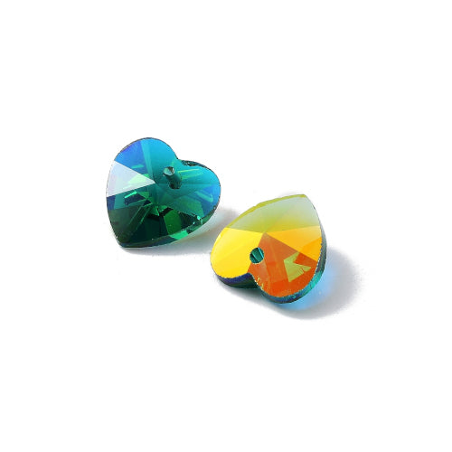 Crafted with precision from high-quality glass, each heart charm boasts a stunning Green AB hue with a colorshift effect that radiates dazzling beauty, making these heart-shaped charms the perfect choice for creating eye-catching necklaces, earrings, or charms.