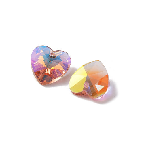 Glass Charms, Heart, Faceted, Violet AB, 14mm - BEADED CREATIONS