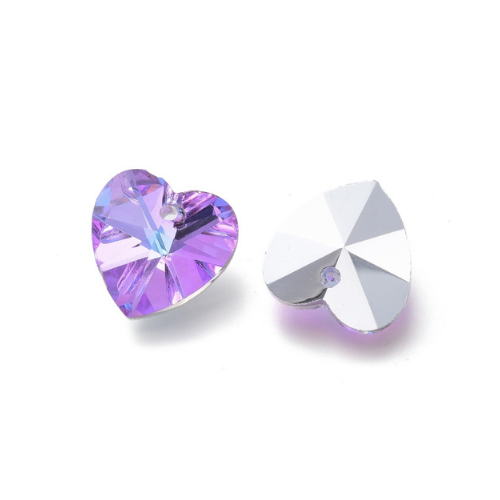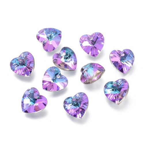 Glass Charms, Heart, Faceted, Vitrail Light, 14mm