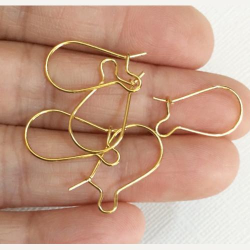 Kidney Ear Wires, Alloy, Gold Plated, 24x11mm