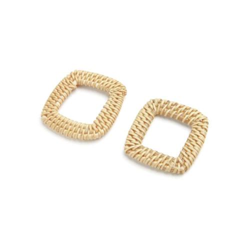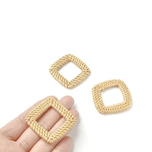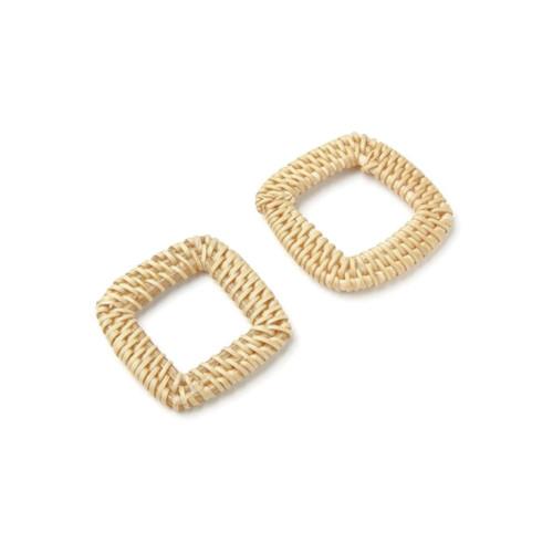 Linking Rings, Square, Rattan, Woven, Cream, 40mm