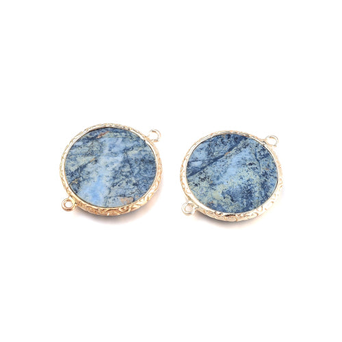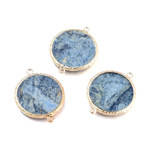 Bring gemstone style to your designs with these gorgeous handmade natural, Blue Spot Jasper, Round, Links, set with gold plated brass edges and loops.