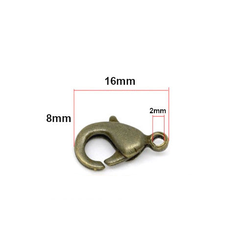 Lobster Claw Clasps, Antique Bronze, Alloy, 16x8mm