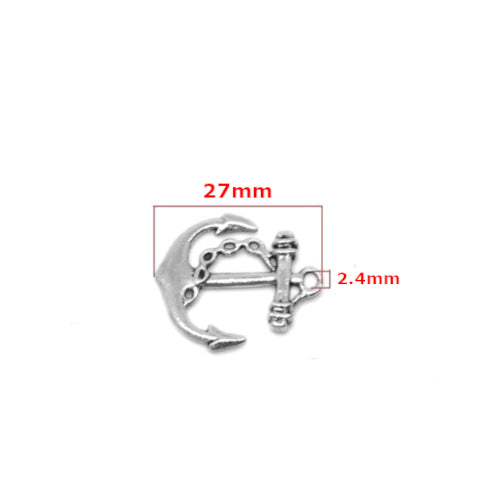 Pendants, Anchor, Antique Silver, Alloy, 27mm