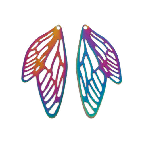 Pendants, Butterfly Wings, Laser-Cut, Rainbow, Alloy, 50mm