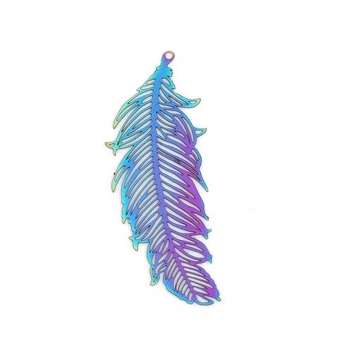 Pendants, Feather, Stainless Steel, (IP), Rainbow, 47mm