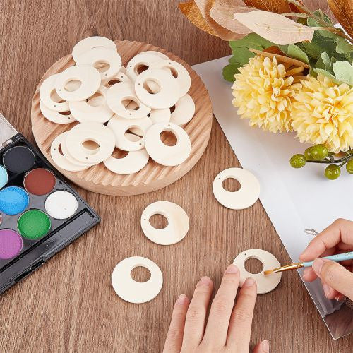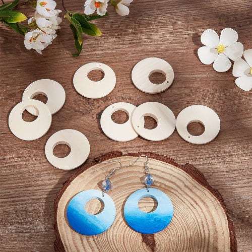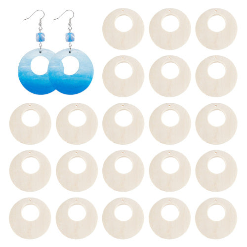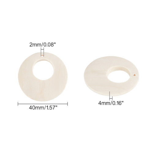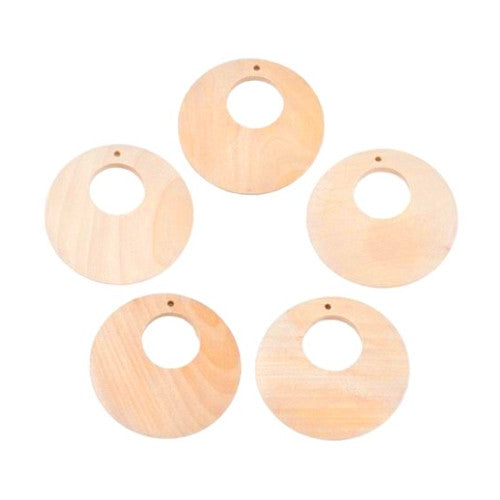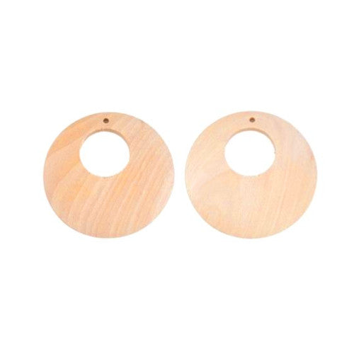 Pendants, Gypsy Hoops, Round, Wood, Raw, 40mm