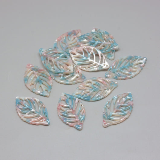The pearlescent finish adds depth and dimension to the detailed leaves, which are perfect for making drop earrings, adding iridescence to tropical necklaces, and much more.