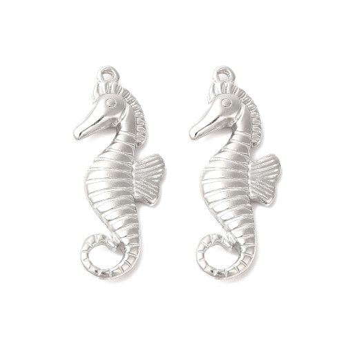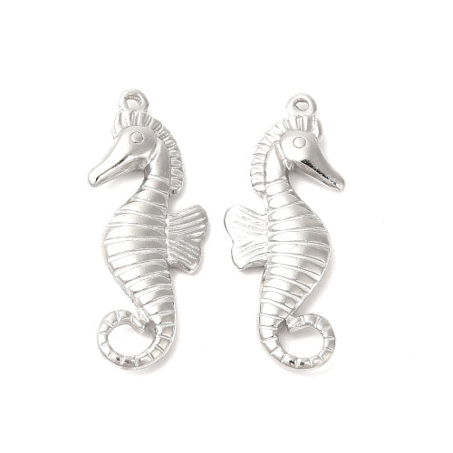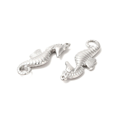Pendants, Seahorse, Stainless Steel, Silver, 30mm